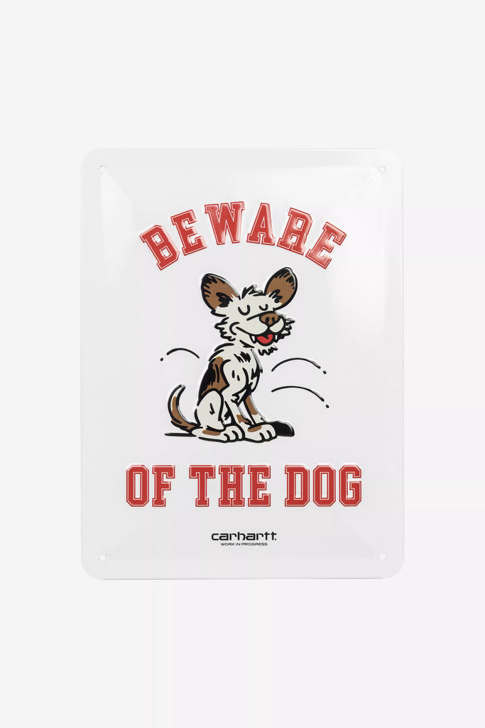 The Wild Dog Beware Plate is made from a tin-plated steel. It features an embossed graphic.