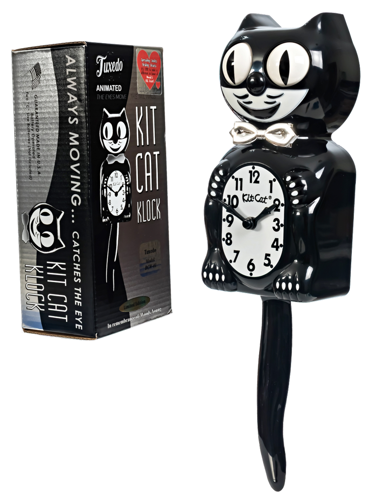 🎩 The First-Ever Tuxedo Kit-Cat! – Classic black with an ivory-printed belly and matching ivory smile. ✨ Real Chrome Bow Tie – A stylish new detail never before featured on a Kit-Cat Klock. 📦 Exclusive Anniversary Box – Metallic-finish vintage-style packaging, perfect for collectors. 🕰 An Icon of American Whimsy – Kit-Cat Klocks have been bringing joy and charm to homes since 1932. 💖 Giving Back in Woody’s Honor – $1 from every Tuxedo Kit-Cat sold helps provide life-saving heart surgeries for children in need. The Kit-Cat Klock has been an American classic since 1932, known for its signature rolling eyes, wagging tail, and contagious smile that have made it a beloved part of homes for generations. This special Tuxedo Edition pays tribute to Woody Young, who led Kit-Cat for over 40 years and helped keep this iconic clock proudly made in the USA.