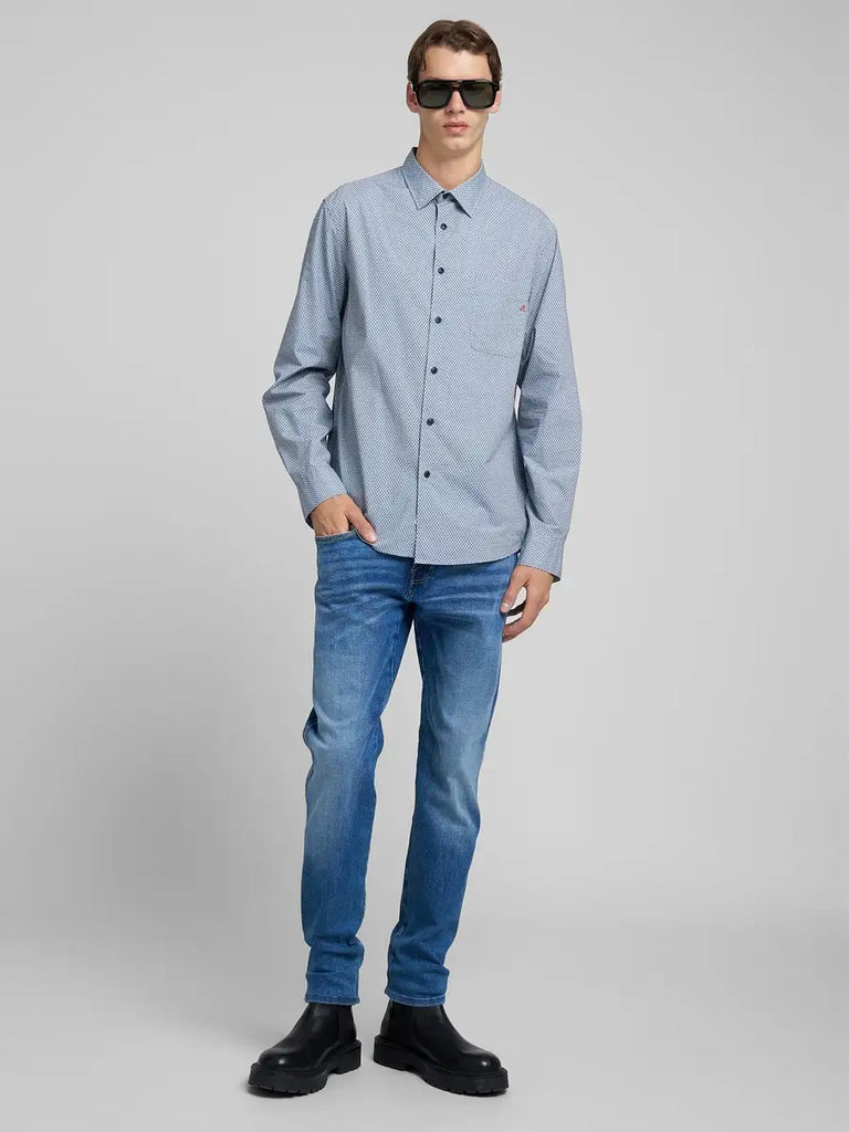 Hyperflex Re-Used is reborn from eco-friendly raw materials, a mix of reused or recycled materials. Thanks to the blend of regenerated cotton and recycled polyester, Hyperflex Re-Used can be defined as eco-denim twice over! Slim-fit jeans with a regular rise and a slim leg that tapers toward the hem. This style is made from 11.5-oz Hyperflex stretch cotton indigo denim with a dark wash and a stone wash with bio rubber and dry enzymes and final hang dry. This five-pocket garment alsofeatures hand-created whiskering and scraping that create colour contrast on the wear areas. The iconic gull-wing stitching decorates the coin pocket and back pockets, one of which is also embroidered with the letter R. Zip and button fastening.