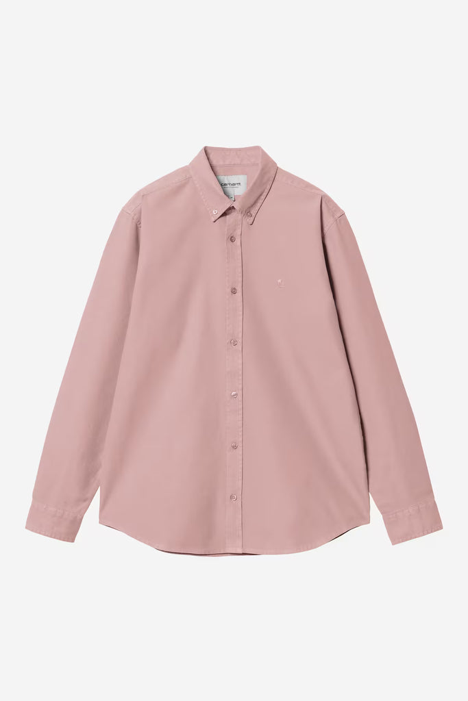 The L/S Bolton Shirt is a classic button-down style and has been woven from Oxford cotton in a regular fit, and features a curved hem. It has been garment-dyed resulting in a subtle variation in color throughout and a softer feel. It is finished with a button-down collar and subtle embroidered Carhartt WIP 'C' Logo at the chest.
