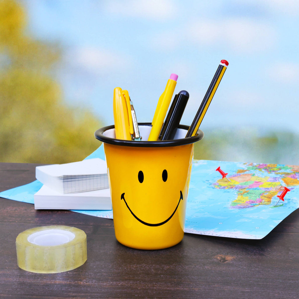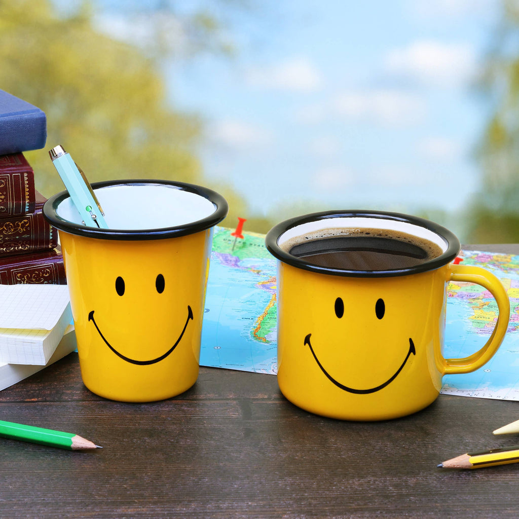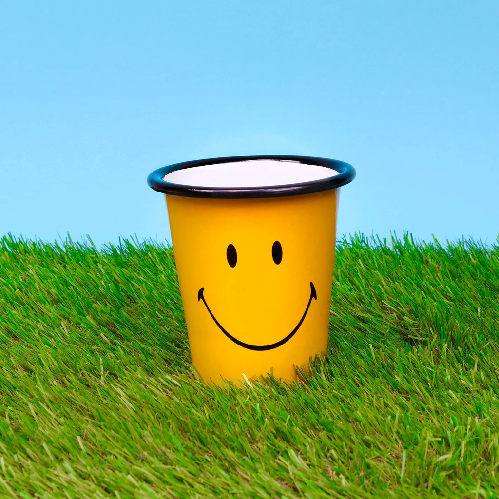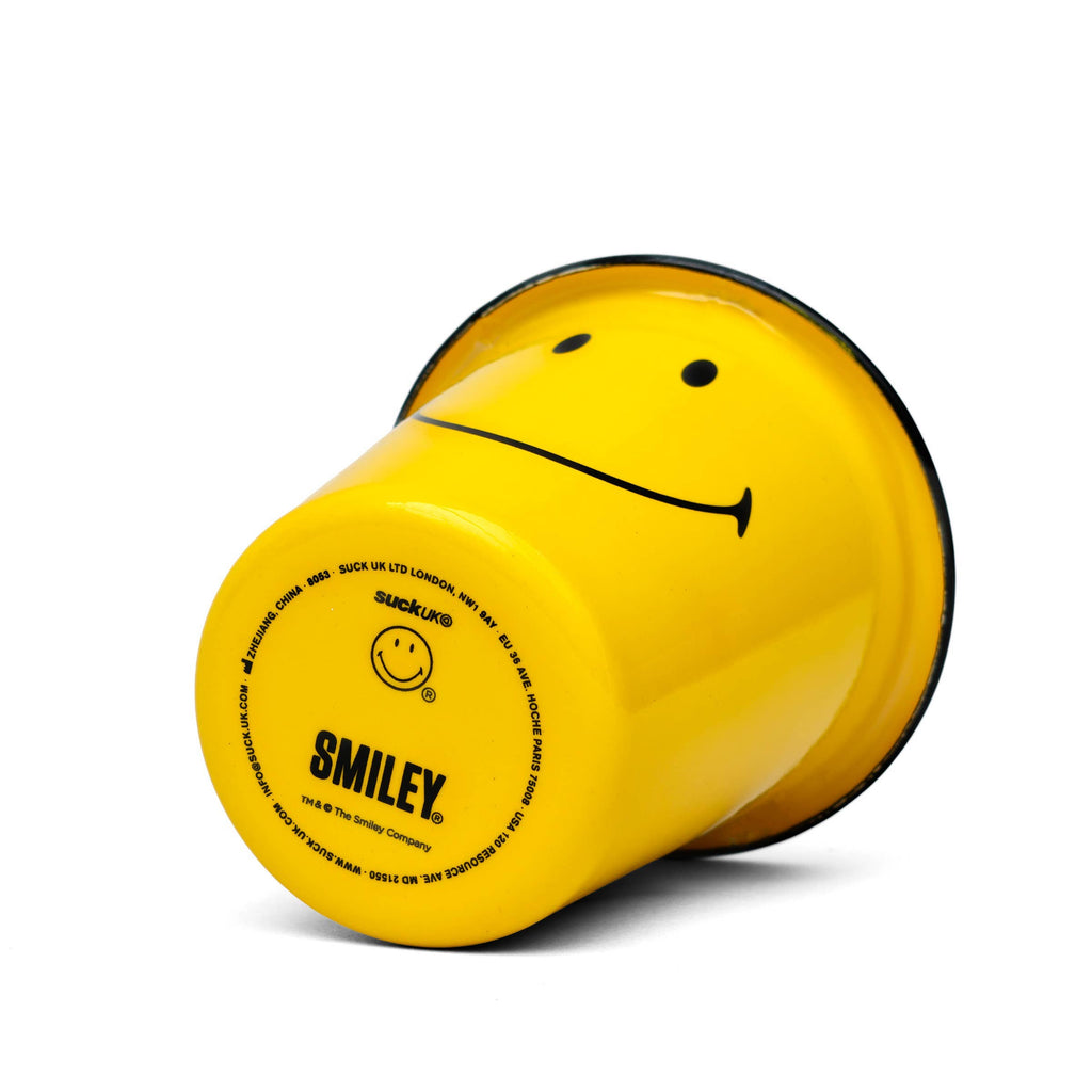 Smiley Enamel Tumbler – For Happy Campers Everywhere Enamelware that’s as cheerful as your morning coffee (or your afternoon wine). Brighten up every sip with the Smiley® x Suck UK enamel tumbler — a sunshine-yellow essential for good vibes and good drinks. Made from sturdy enamelware with the iconic Smiley face and a bold black rim, it’s designed for campers, picnickers, and anyone who likes their refreshment served with a grin. Details: Official Smiley® x Suck UK collaboration Durable yellow enamel tumbler with black rim and Smiley face Holds 10oz / 300ml Ideal for coffee, tea, or a cheeky glass of wine Lightweight, strong, and easy to clean Perfect for camping, picnics, and positive energy