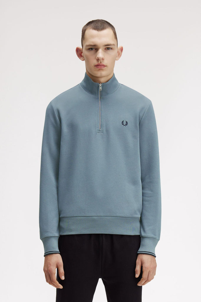 Fred Perry M3574 Half Zip Sweatshirt - Stockport Blue