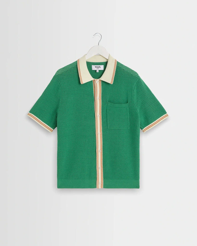 Wax London Belle Tipped Pointelle Knitted Shirt - Green / Ecru