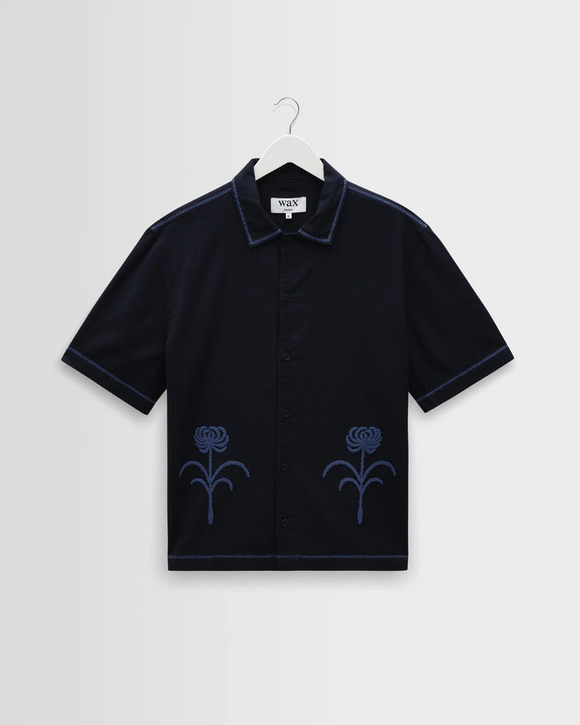 Wax London Keats Embroidered Shirt - Navy / Blue