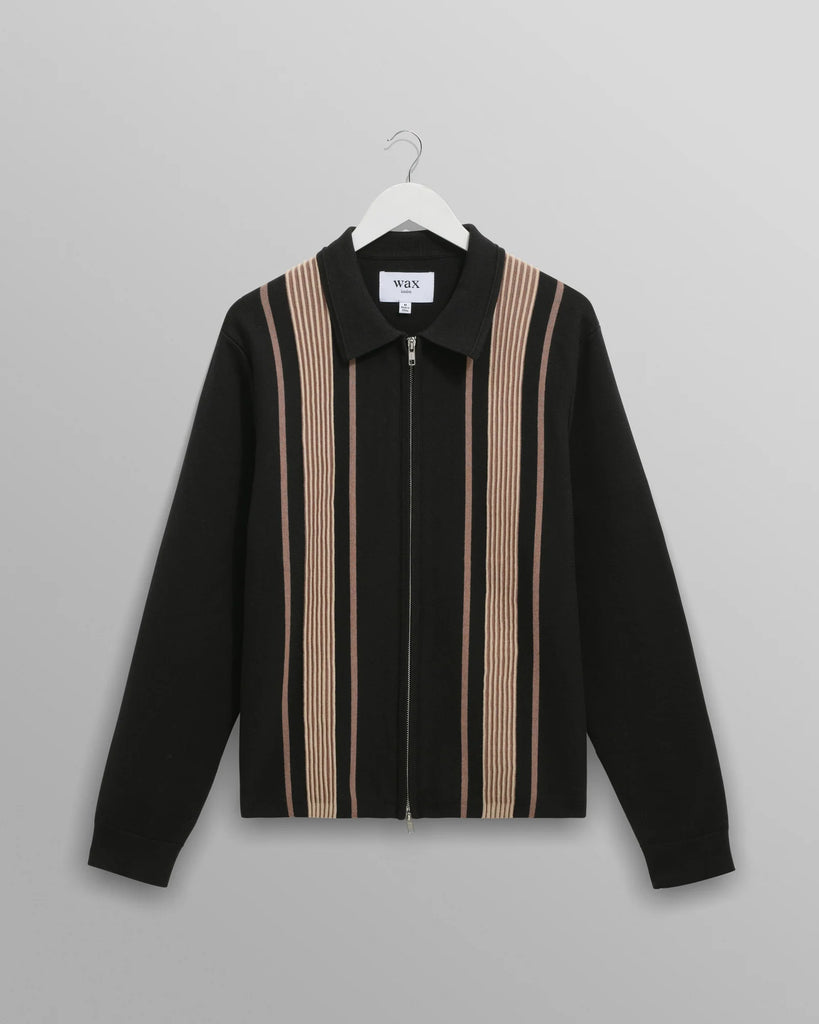 The Lennox is a modern take on the timeless zip polo. Crafted from a soft cotton blend with a touch of cashmere in a milano knit construction, it offers a warmer, more luxurious handfeel. It features tonal rib stripe detailing, ribbed cuffs and collar, and a double-ended zip for versatile styling. Finished in a clean black and beige colourway.