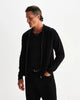 The Lennox is a modern take on the timeless zip polo. Crafted from a soft cotton blend with a touch of cashmere in a milano knit construction, it offers a warmer, more luxurious handfeel. It features tonal rib stripe detailing, ribbed cuffs and collar, and a double-ended zip for versatile styling. Finished in a clean black colourway.