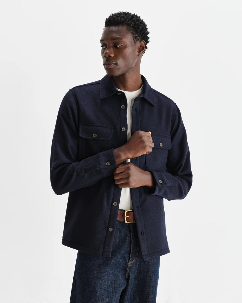 The Lomond is the everyday overshirt you’ve been searching for. Designed with a regular fit, this take on our Lomond silhouette comes in a thick wool blend in a navy colourway - making it an effortlessly versatile layering piece. It is finished with two front flap pockets and two side seam pockets.
