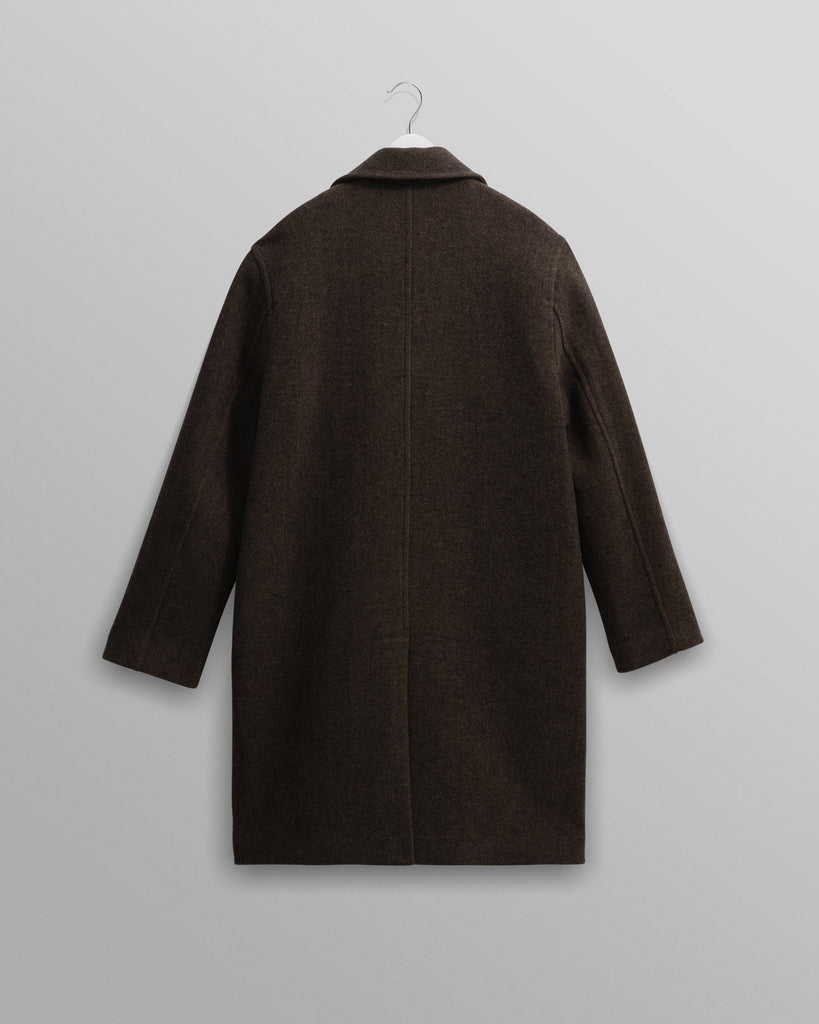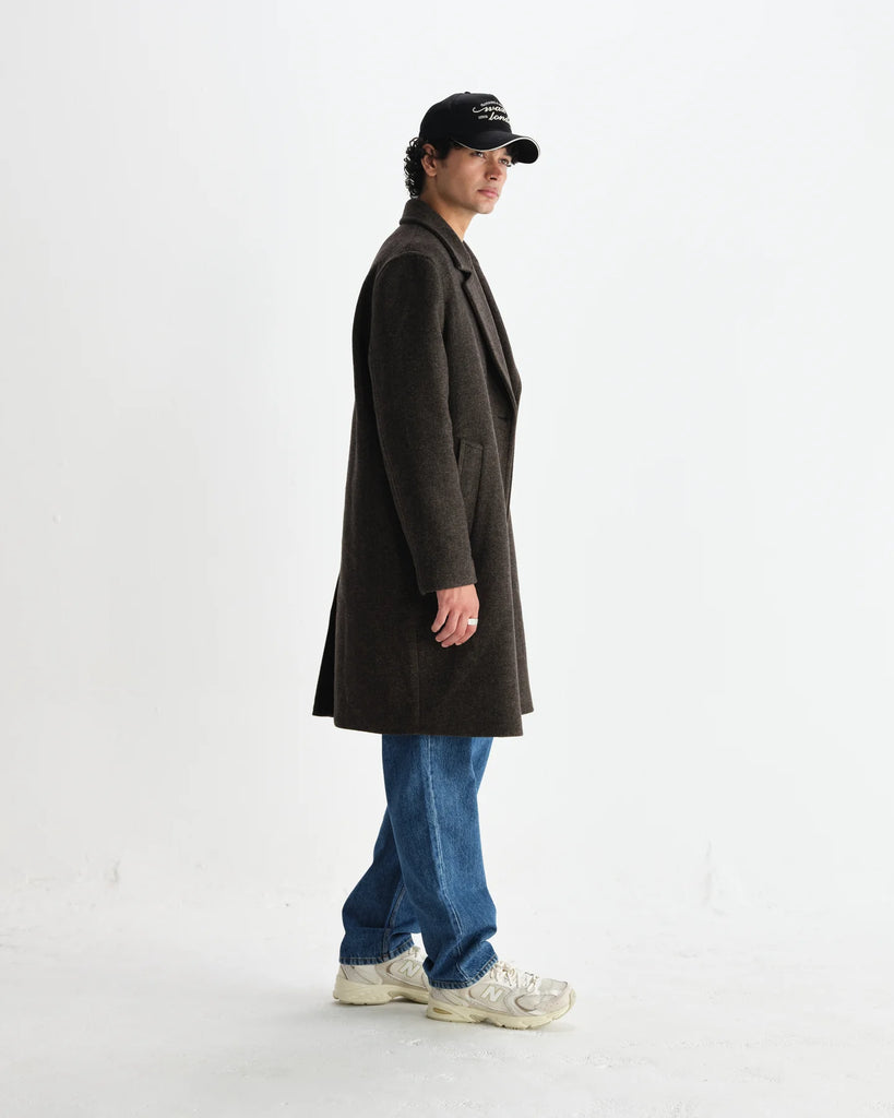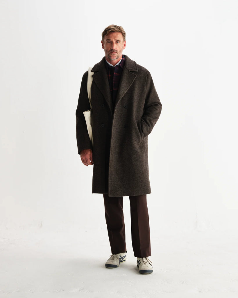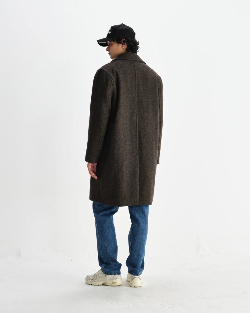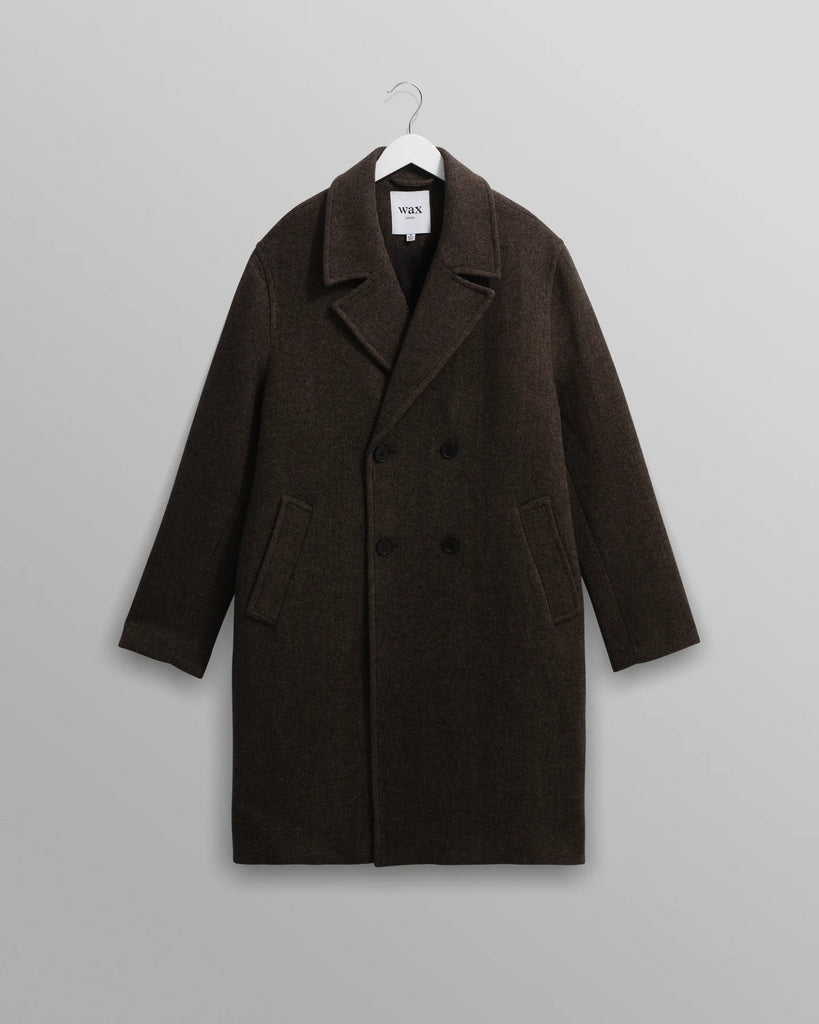 Wax London Magnus Double Breasted Overcoat - Wool Herringbone Brown