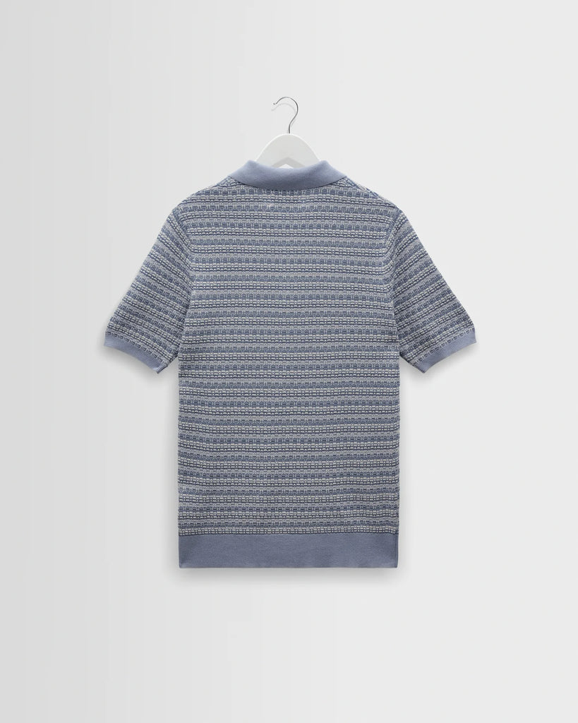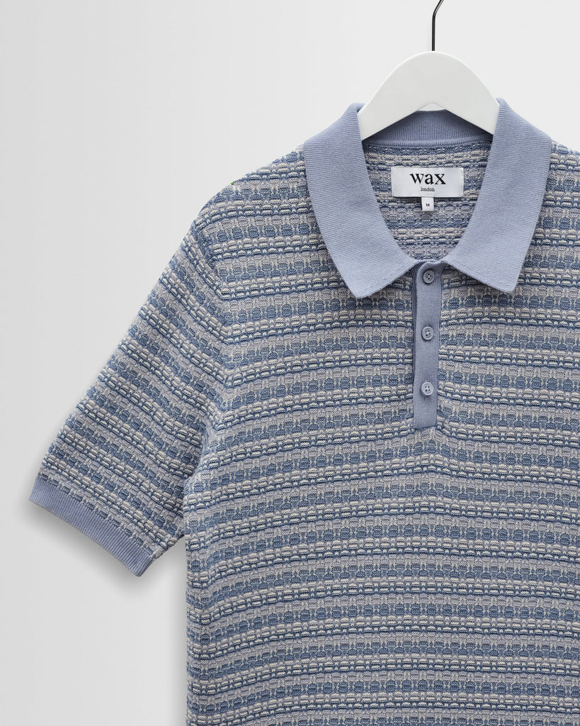 Wax London Naples Mini Geometric Knitted Polo - Light Blue