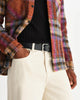 Your belt loop’s new best friend has arrived. The Paton is crafted from black pull-up buffalo leather packed with oils for a distinctive two-tone look, featuring heavy-duty gold plated hardware and subtle embossed branding on the inside. Rugged yet refined, it's a timeless staple made for everyday wear.