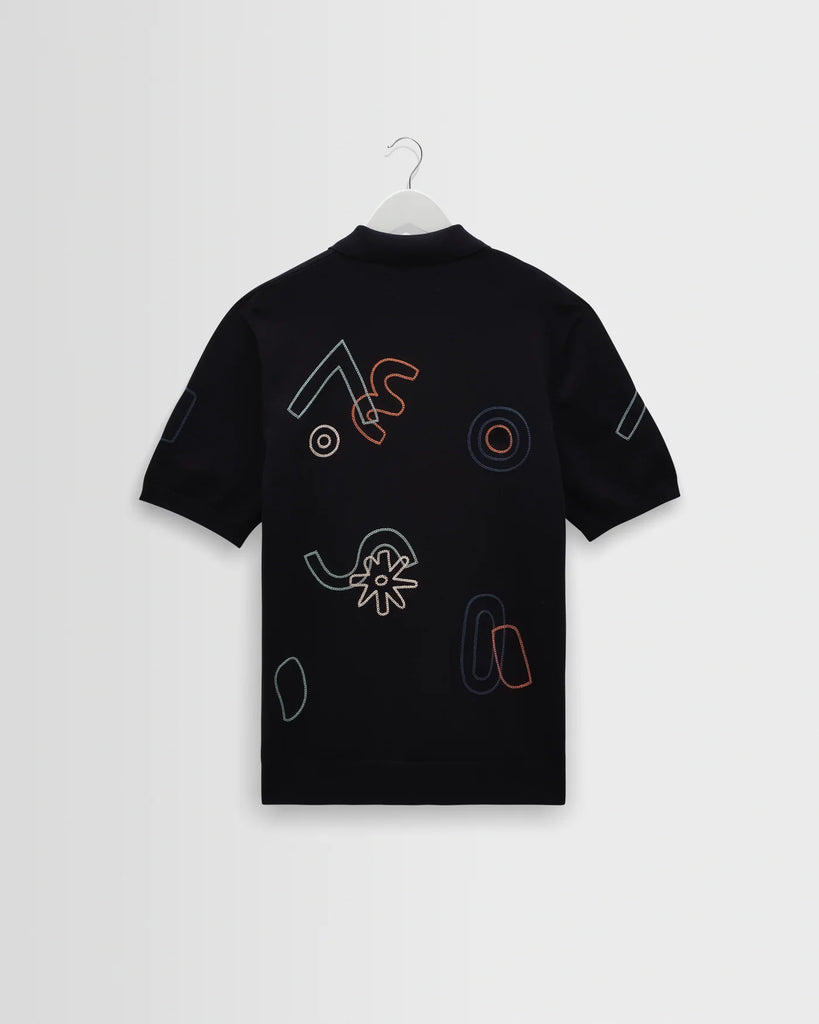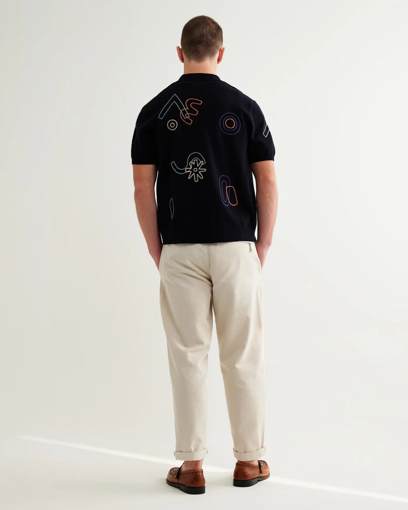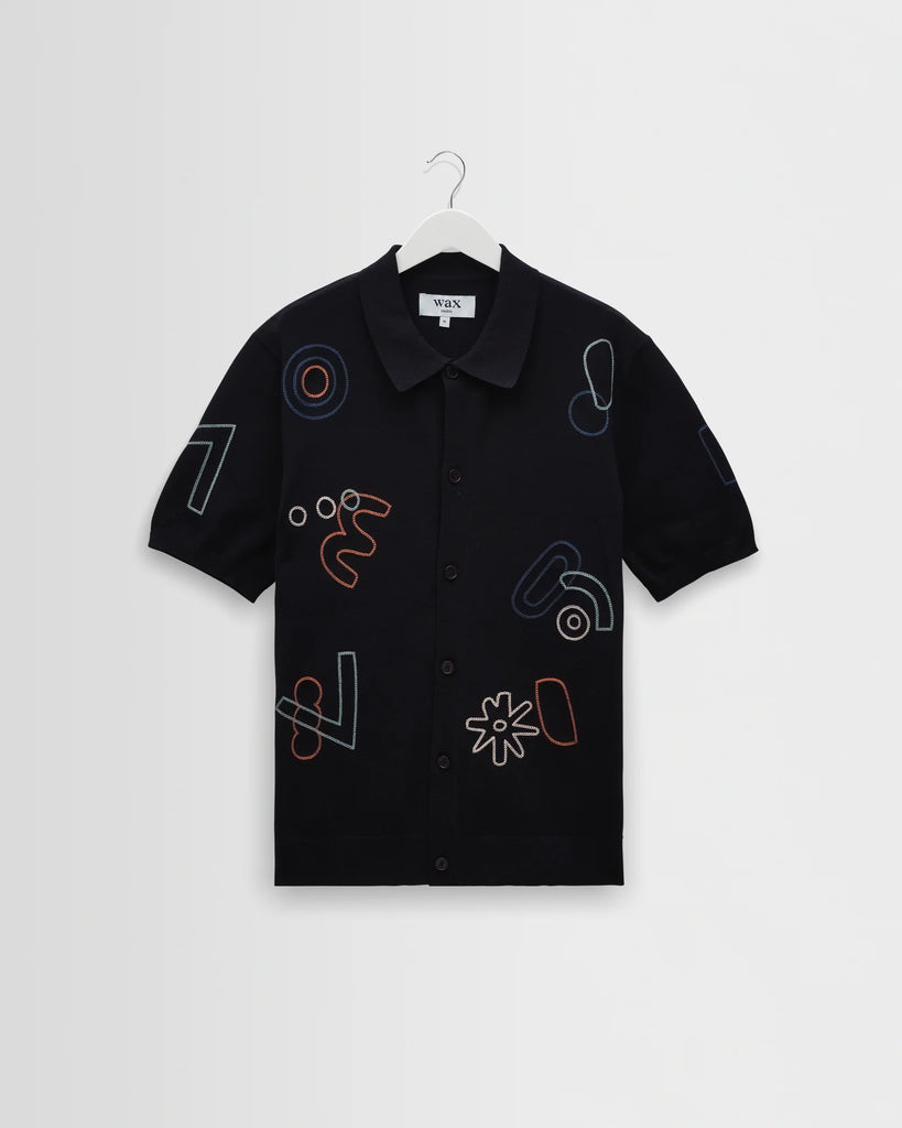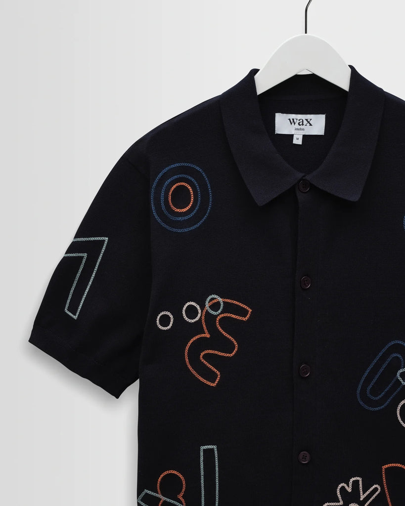 Wax London Tellaro Embroidered Shapes Knitted Shirt - Navy / Multi