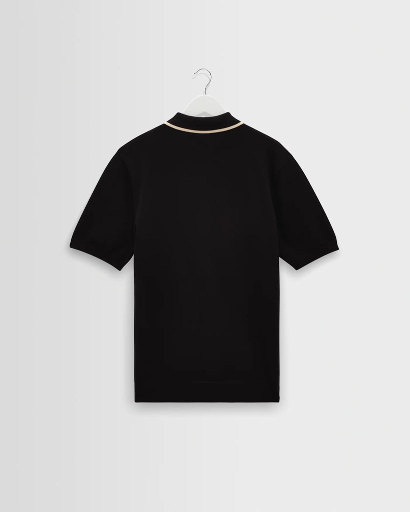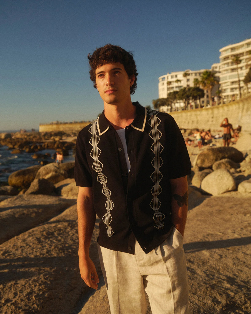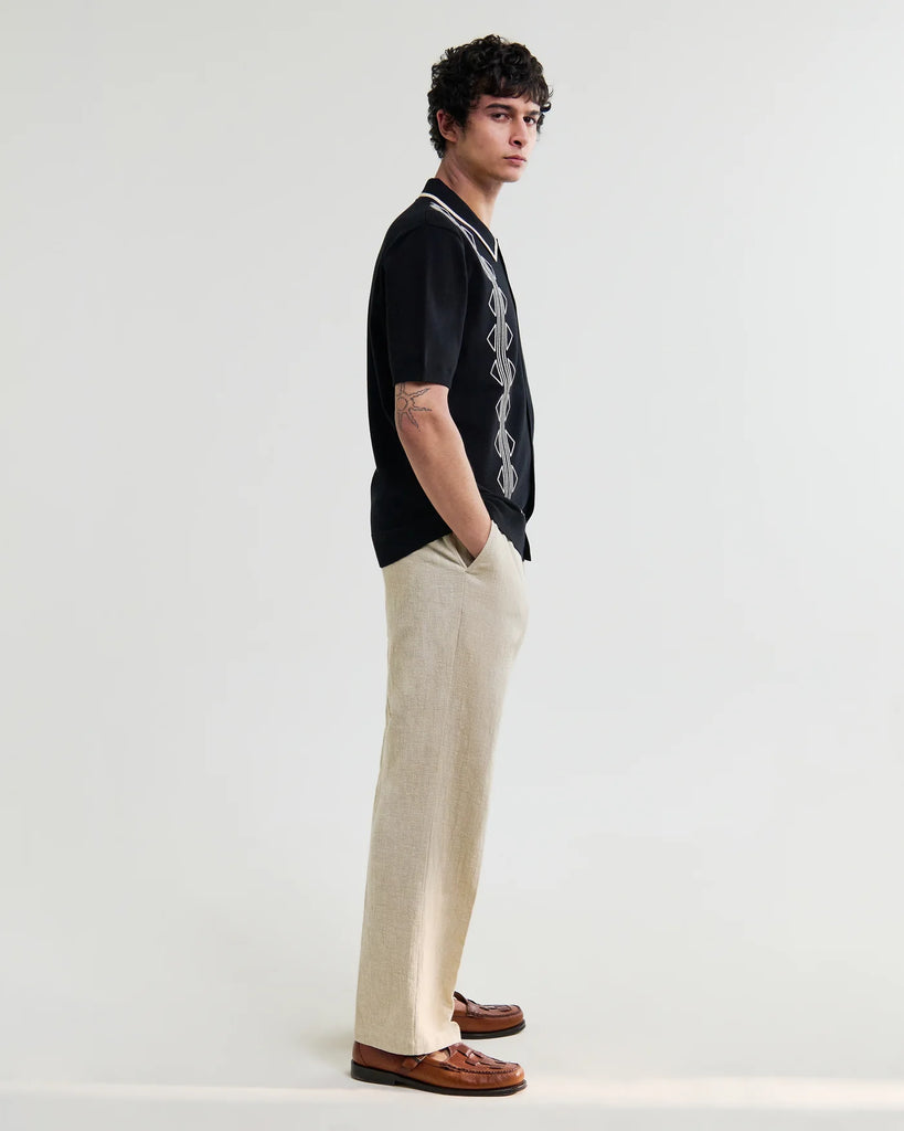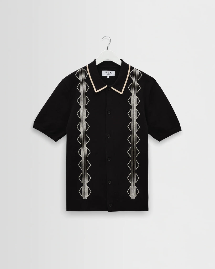 Wax London Tellaro Retro Embroidered Knitted Shirt - Black / Ecru