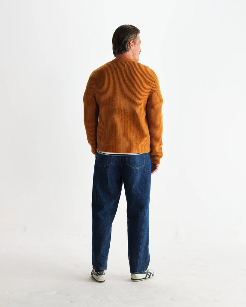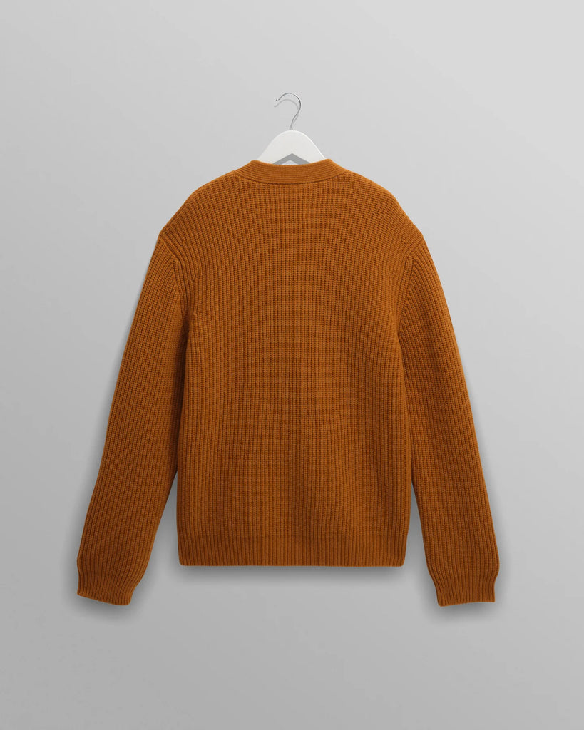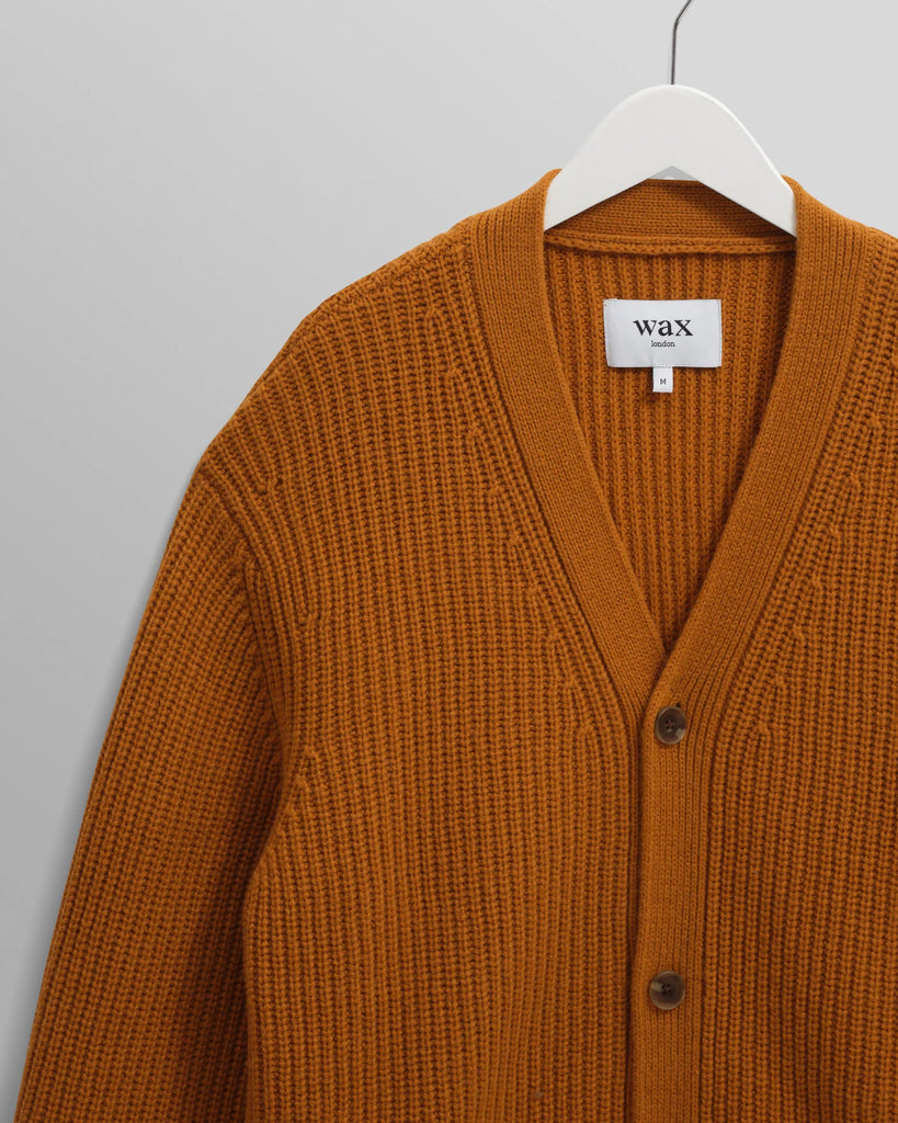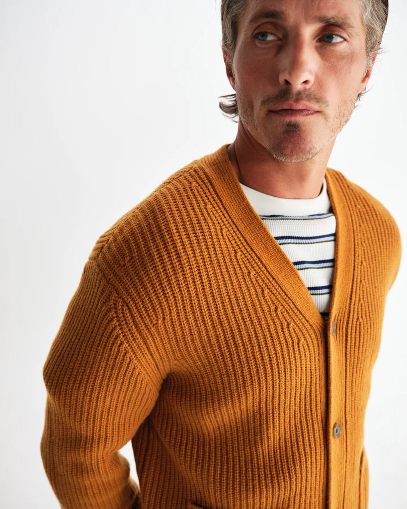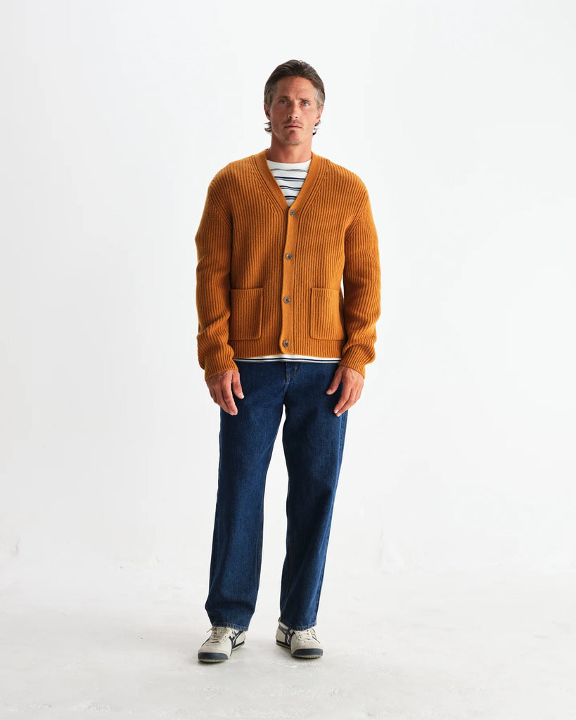 The chunky Walker returns - now better than ever. Cut in a relaxed fit with a classic v-neck cardigan silhouette, it’s crafted from a warm wool blend in a classic ochre rib stitch design. Finished with two front patch pockets and ribbed trims at the collar, hem, and cuffs.