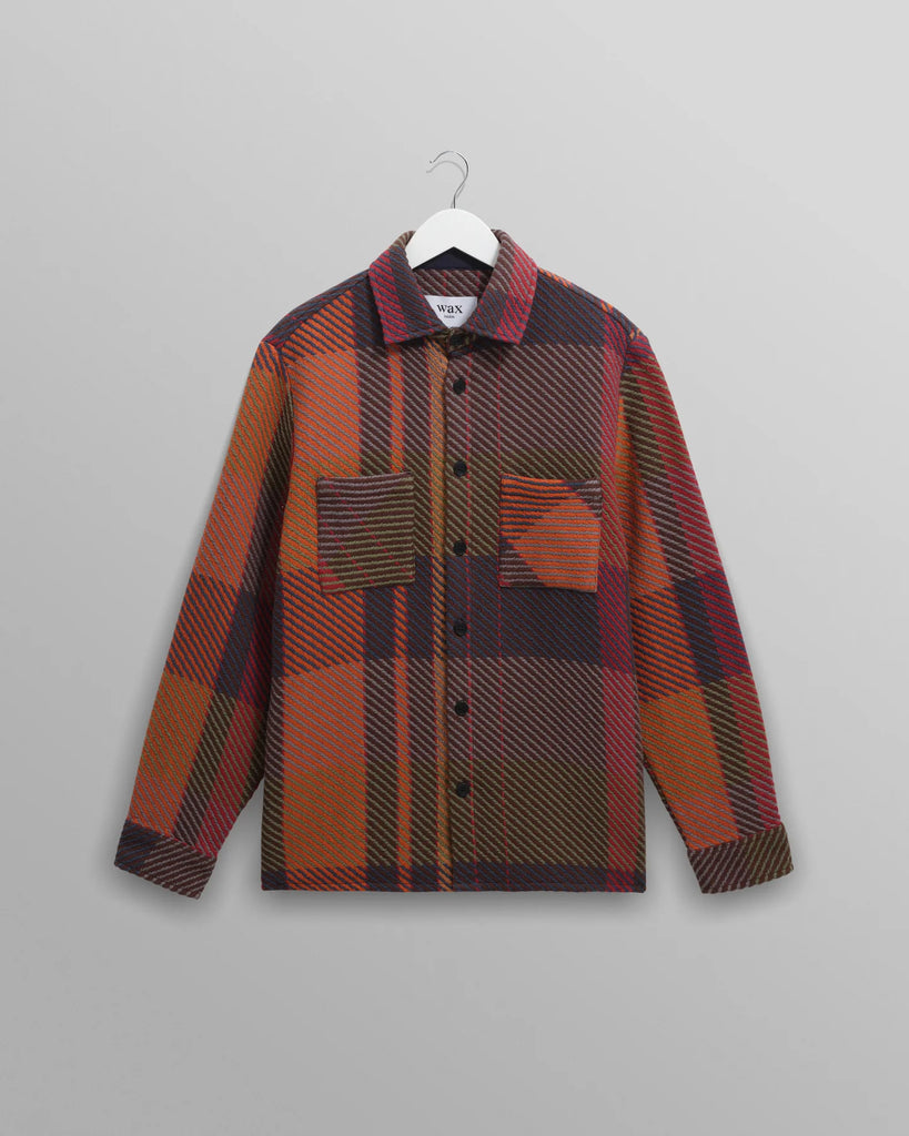 The Wax signature piece. The Whiting, our year-round staple, returns in a new large-scale tempo check design that mixes orange, red, green, brown and blue yarns. Crafted from a fabric made sustainably by a family-run French mill using recycled cotton, this effortlessly wearable overshirt combines timeless style with responsible craftsmanship. Is it a shirt? Is it a mid-layer? Is it a jacket? It's all of those things and much, much more.