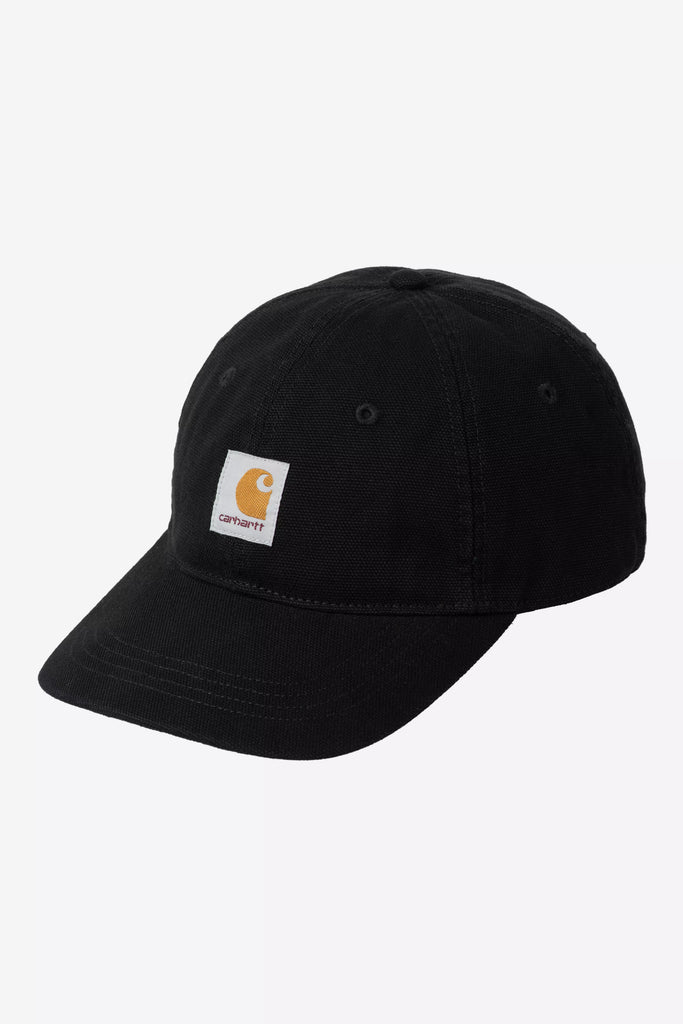 The Selby Canvas Cap is an unstructured six-panel design made from a heavyweight cotton canvas. The cap has a firm, curved peak. A Velcro® strap at the back offers an adjustable fit. A woven Square Label appears on the front, and an embroidered Script Logo appears on the back.