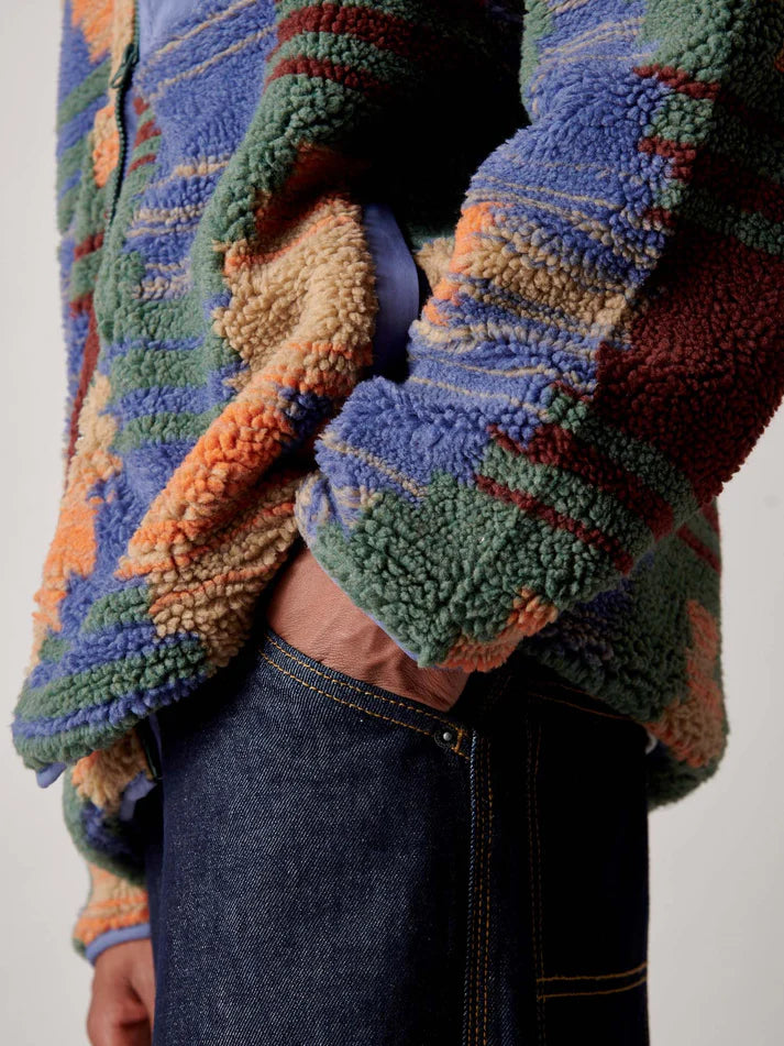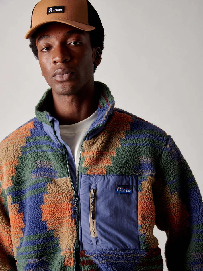 Rooted in New England’s utility and shaped by decades in the open, the Forefounders Mattawa Jacket brings heritage into the now. Its distinctive print nods to traditional textile artistry, reimagined in bold geometric form. Built for the elements and designed for everyday wear, it’s a piece that works hard—whether on a windy ridge or an early coffee run. Layer it over a tee or under a waterproof shell, and let the borg fleece do the rest.