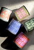 Our products are 100% eco-friendly, vegan and recyclable! Our components are ethically sourced and free of petroleum, GMO’s, lead, phthalates and never tested on animals. We use high quality vessels, all natural cotton/paper wicks and the best fragrance oils available.